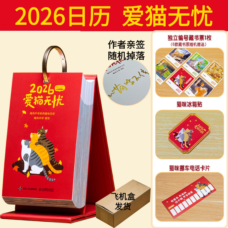 愛貓無憂2026 喵嗚不停日曆 街貓攝影 桌面台歷可愛貓咪寫真圖集 附贈貓咪冰箱貼紙+藏書票+挪車電話卡片