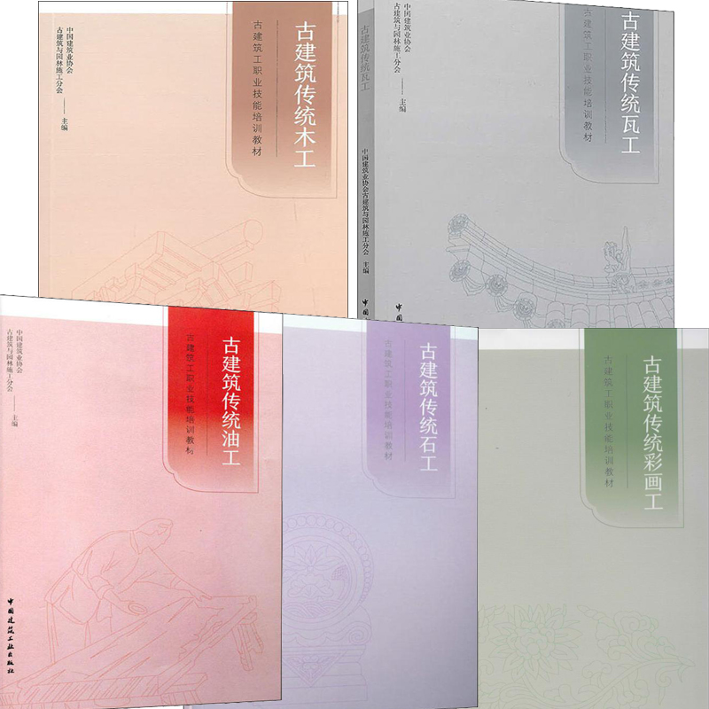 古建築傳統木工+瓦工+傳統油工+傳統石工+彩畫工 (全5冊)古建築理論知識 關鍵技術 工藝流程