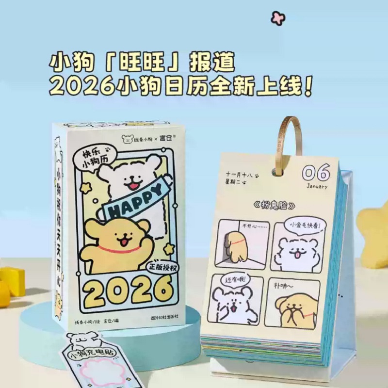 線條小狗2026日曆 快樂小狗桌曆 實用新年生日禮物