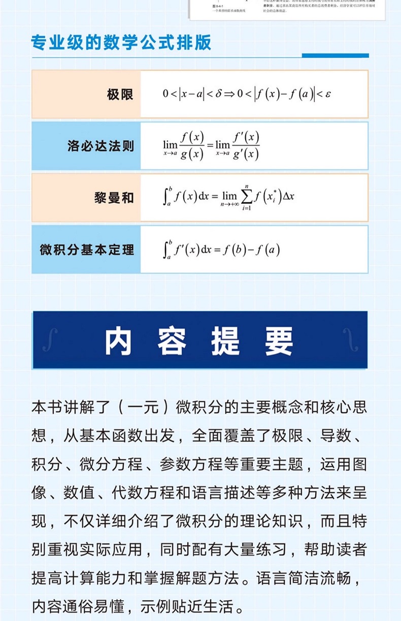 本書深入淺出地講解了(一元)微積分的主要概念和核心思想,從基本函數出發,全面覆蓋了極限、導數、積分、微分方程、參數方程等重要主題,運用圖像、數值、代數方程和語言描述等多種方法來呈現,不僅詳細介紹了微分方程、參數方程等重要主題,運用圖像、數值、代數方程和語言描述等多種方法來呈現,不僅詳細介紹了微積分的理論知識,而且特別重視實際應用,同時掌握大量能力,幫助讀者掌握計算能力和掌握計算能力。語言簡潔流暢,內容簡單易懂,範例貼近生活。