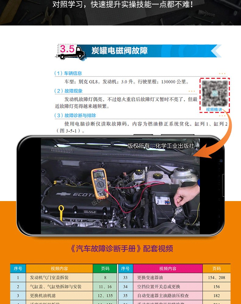 全書分上下兩篇共22章介紹。上篇為汽車電氣基本構造與原理,以全彩圖解的形式,重點介紹汽車電氣系統各大組成部件的構造原理;下篇為汽車維修與故障排除,結合視頻講解,重點介紹汽車電工維修基本知識和操作技能。