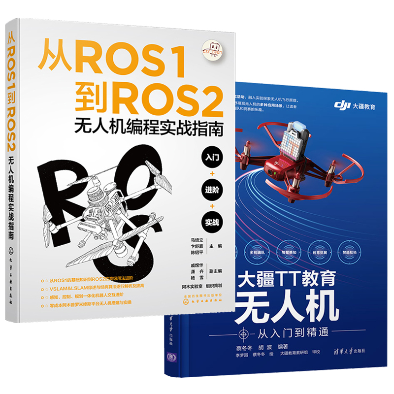 【全彩圖解】大疆TT教育無人機從入門到精通+從ROS1到ROS2無人機編程實戰指南(共2冊)
