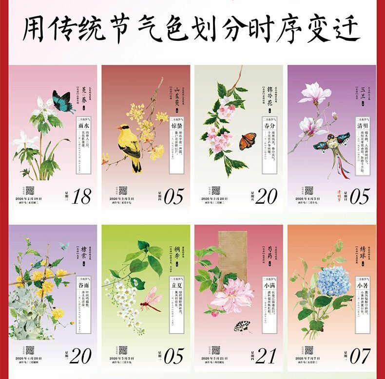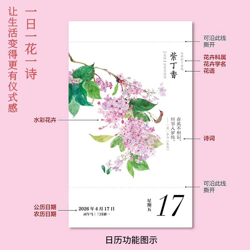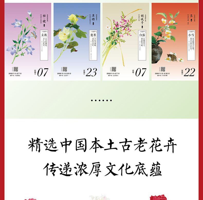 花開有時日曆 馬年2026年新款創意可撕臺曆 水彩花卉插畫集手帳 24節氣一日一詩詞 桌面擺件禮物
