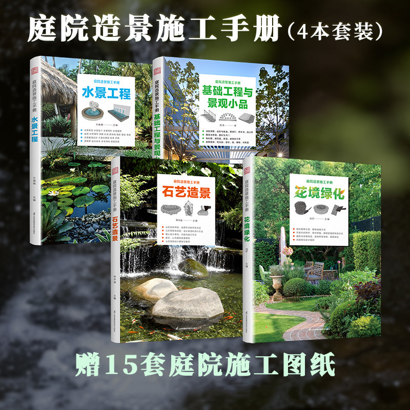 庭院造景施工手冊(全4冊):基礎工程與景觀小品+水景工程+石藝造景+花境綠化