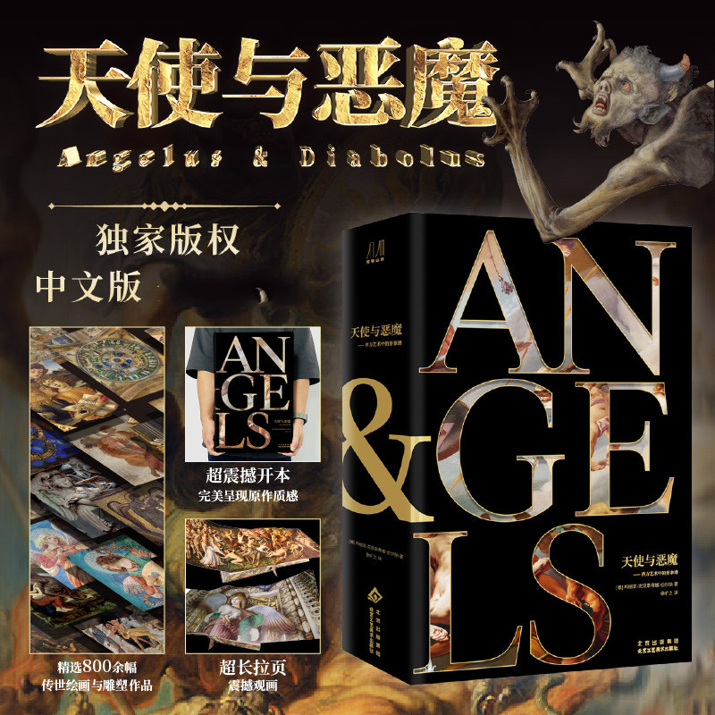 【三面書口刷邊 精裝超大8開】《天使與惡魔 》西方藝術中的形象譜 歐洲中世紀教堂繪畫天使惡魔主題畫集人類心靈狀態社會秩序意識形態觀念變化