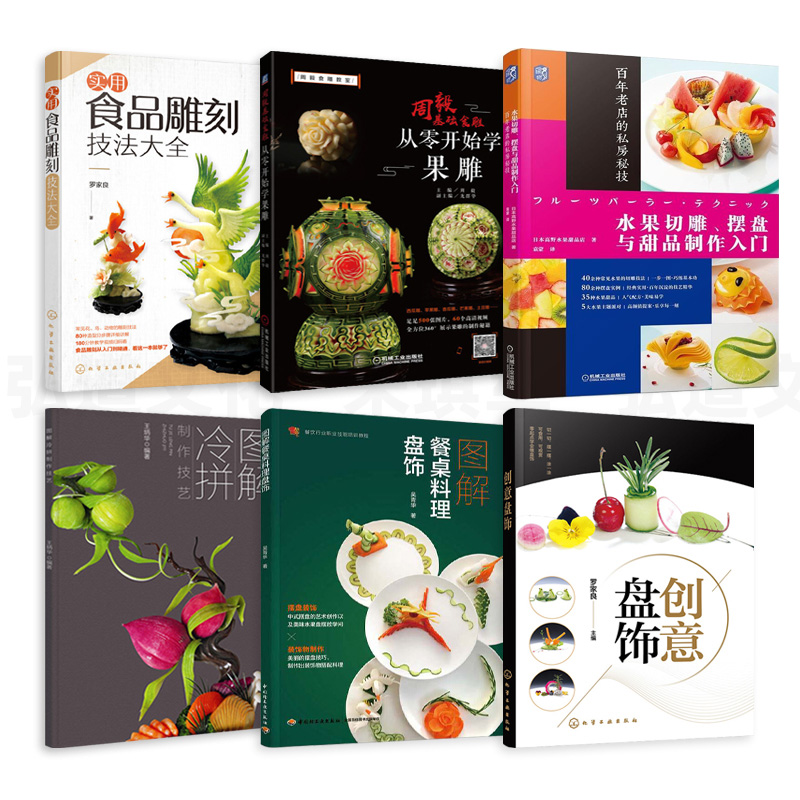 【全彩圖解共6冊】周毅基礎食雕-從零開始學果雕+創意盤飾+冷拼製作技藝+圖解餐桌料理盤飾+食品雕刻技法大全+水果切雕擺盤甜品製作入門