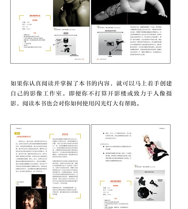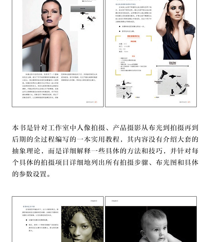 本書是針對工作室中人像拍攝、產品攝影從布光到拍攝再到後期的全過程編寫的一本實用教程,其內容沒有介紹大套的抽象理論,而是詳細解釋一些具體的方法和技巧,並針對每個具體的拍攝項目詳細地列出所有拍攝步驟、布光圖和具體的參數設置。是一本相當實用的人像和產品攝影的參考書。如果你認真閱讀並掌握了本書的內容,就可以馬上著手創建自己的影像工作室。即便你不打算開影樓或致力於人像攝影,閱讀本書也會對你如何使用閃光燈大有幫助。