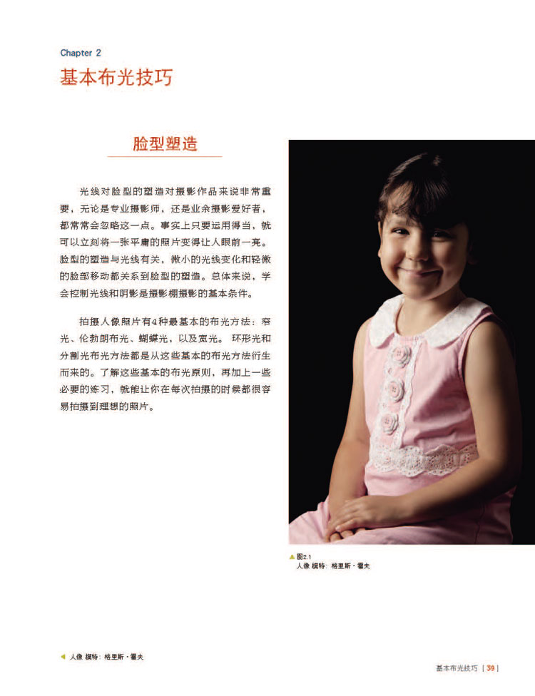 本書還包括使用各種現有品牌的設備和攝影棚燈光的一些建議。一些特殊的佈光案例也按照這樣的方式介紹,通過這樣的方法你就能更容易理解如何運用光照射拍攝主體、為什麼要用獨特的方式佈置閃光燈,以及使用了什麼樣的器材,甚至還包括避免經常出現的攝影小失誤及解決這些問題的方法。通過閱讀本書你會逐漸發覺,自己的攝影技術不斷提高,而且通過學習本書的不同內容,也會在訓練掌握攝影技術的同時產生新的想法。儘管本書的重點是攝影佈光,然而從器材到RAW格式文件的處理等其他方面的攝影內容也會涉及。了解這些方面的知識,能夠幫助你提高觀察力和預見力。