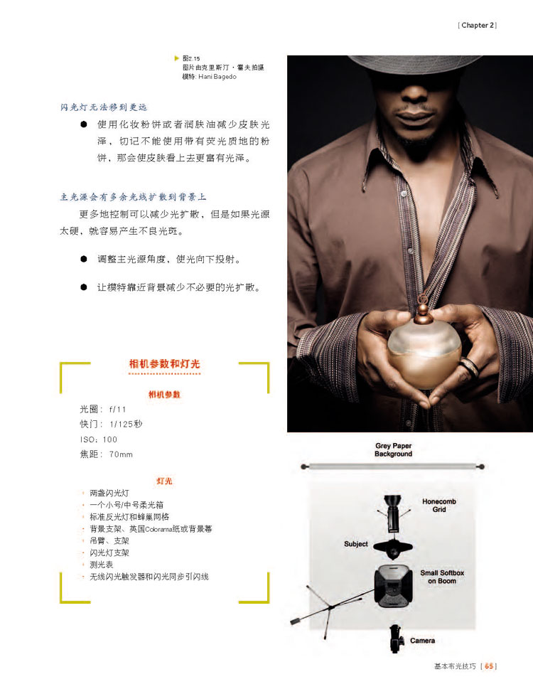 如果從我教學、拍攝示範和雜誌專欄發表的作品的經驗來看,只有一件事情攝影師們比較關注,那就是希望獲得比較明確的、實踐方面的建議。我曾對不同水平的攝影師都說過,我覺得大多數剛學習攝影佈光的攝影師都非常希望了解新奇的佈光技巧,以及結合作品背後的拍攝理念、想法,還有攝影棚技術術語方面的內容。事實上,很多人也可以通過網絡搜索,或者查閱書籍去了解,但是這些方法都不能以一種相互緊密結合的形式學習到這些知識,這也是我決定撰寫本書的原因。事實上,這方面大多數的建議或者網絡論壇的討論都是關於一些大方向問題的討論。本書則會結合佈光和攝影技巧給你一些明確和開放性的建議。請你一定放心,在這一方面,本書的介紹將非常細緻、詳盡。