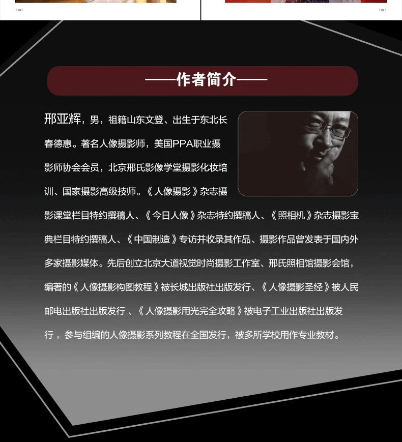 "十年前我創辦了北京邢氏影像學堂,近三年除了日常的攝影教學和商業拍攝,更多的是利用業餘時間完成了這本書的編寫。 從事商業攝影拍攝以及攝影教學二十幾年以來,總是有人問我類似的問題:“人像攝影的光線應該怎麼佈置”“我有三個閃光燈應該怎麼打光? ”“拍一個人我用一個燈行不行? ”等,我往往無言以對。如果你自己都不知道被攝的主體有什麼特點、拍攝主題是什麼、想要達到什麼目的,我又如何回复應該如何佈置呢!這就像你去餐館吃飯問服務員:“今天要吃什麼呢,我應該怎麼吃呢? ”攝影用光也是如此,首先你要明確拍攝的主題是什麼、主體有什麼特點、客戶有什麼要求,然後才能確定要佈置什麼樣的光線。 本書既是一本實用的人像攝影用光教材,更是本人長期攝影實戰以及攝影教學經驗的積累。本書在佈光的講解上,使用了大量的圖片作為實例,並且使用了詳細的案例分解,可以讓讀者更直接、更直觀地了解光線的運用與控制。 本書內容從......