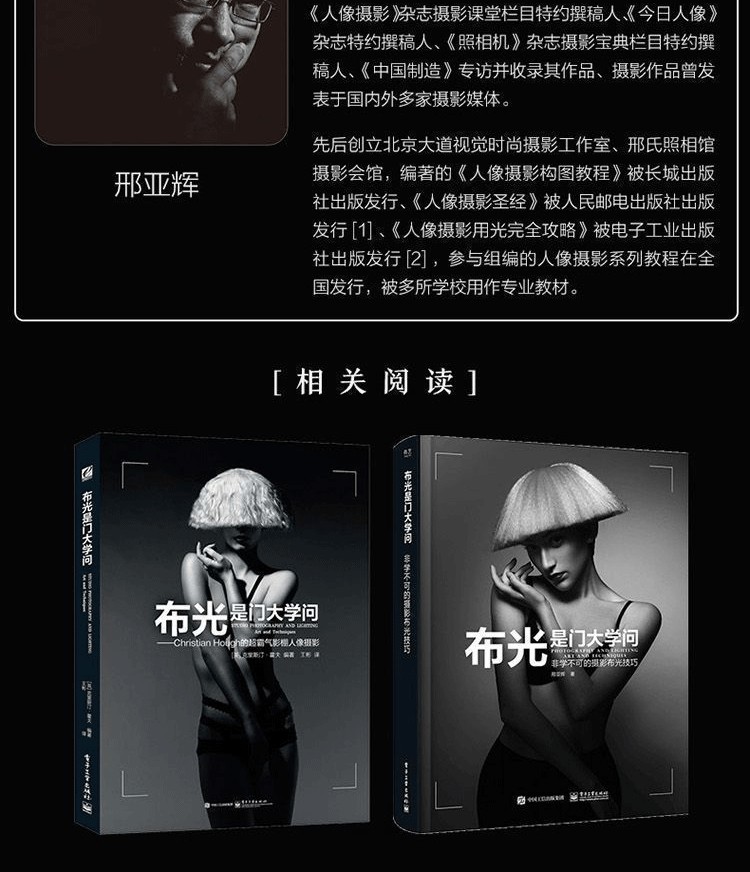 如果你想詳細了解如何用閃光燈布光,商業攝影名師邢亞輝在這本書里手把手教你詳細的布光技巧和具體的參數設置。