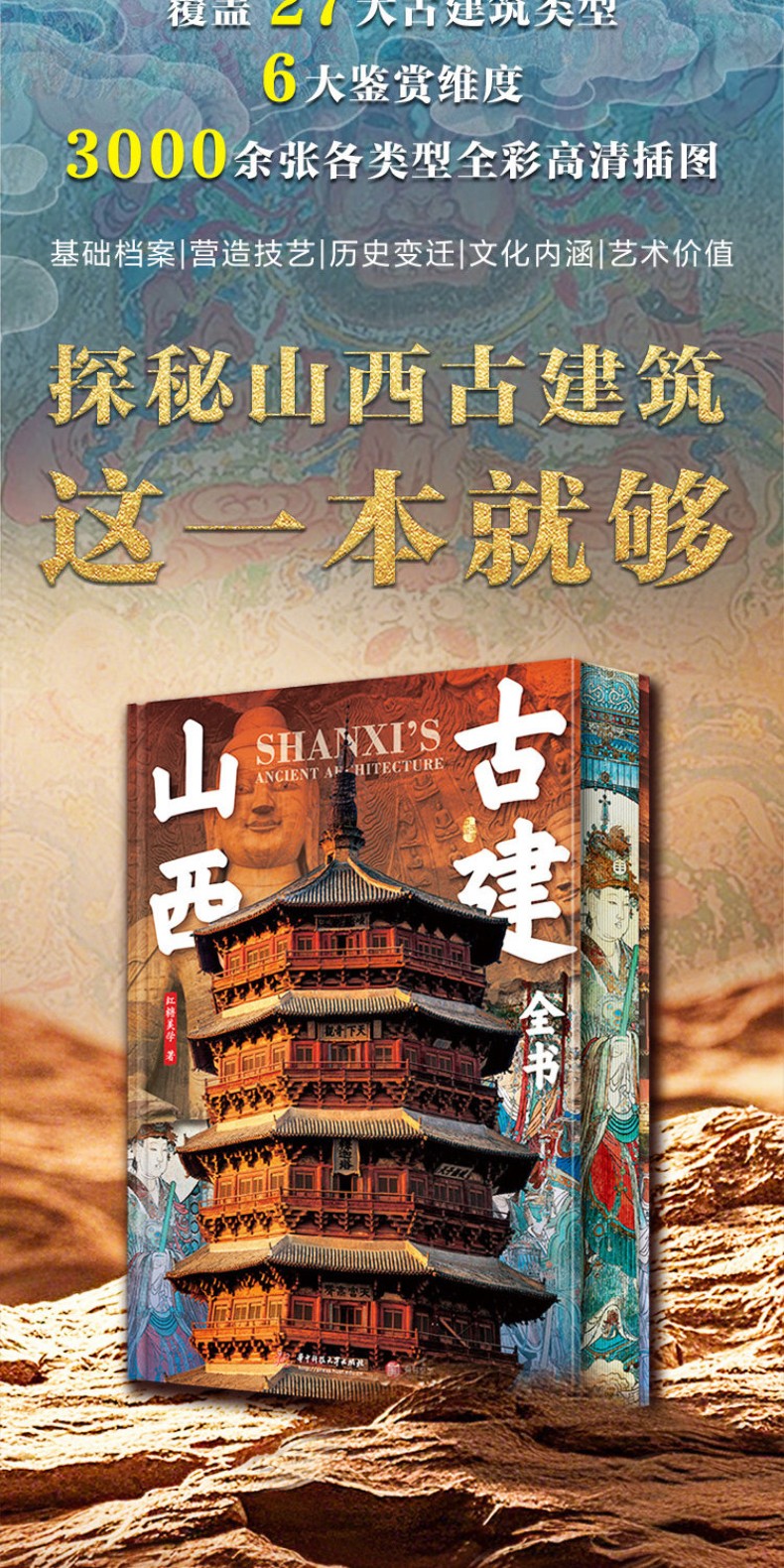 (書重超6KG,無法超商入櫃,請選擇宅配到家)山西古建全書 附贈 懸空寺印章+應縣木塔藏書票+壁畫畫片