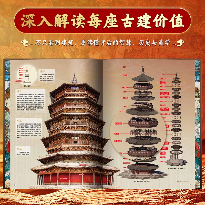 【精裝8開 刷邊禮盒版】山西古建全書 隨書附贈 懸空寺印章+應縣木塔藏書票+壁畫畫片