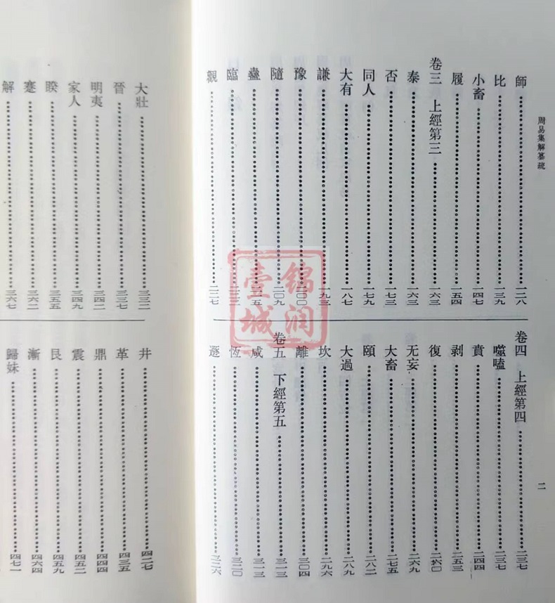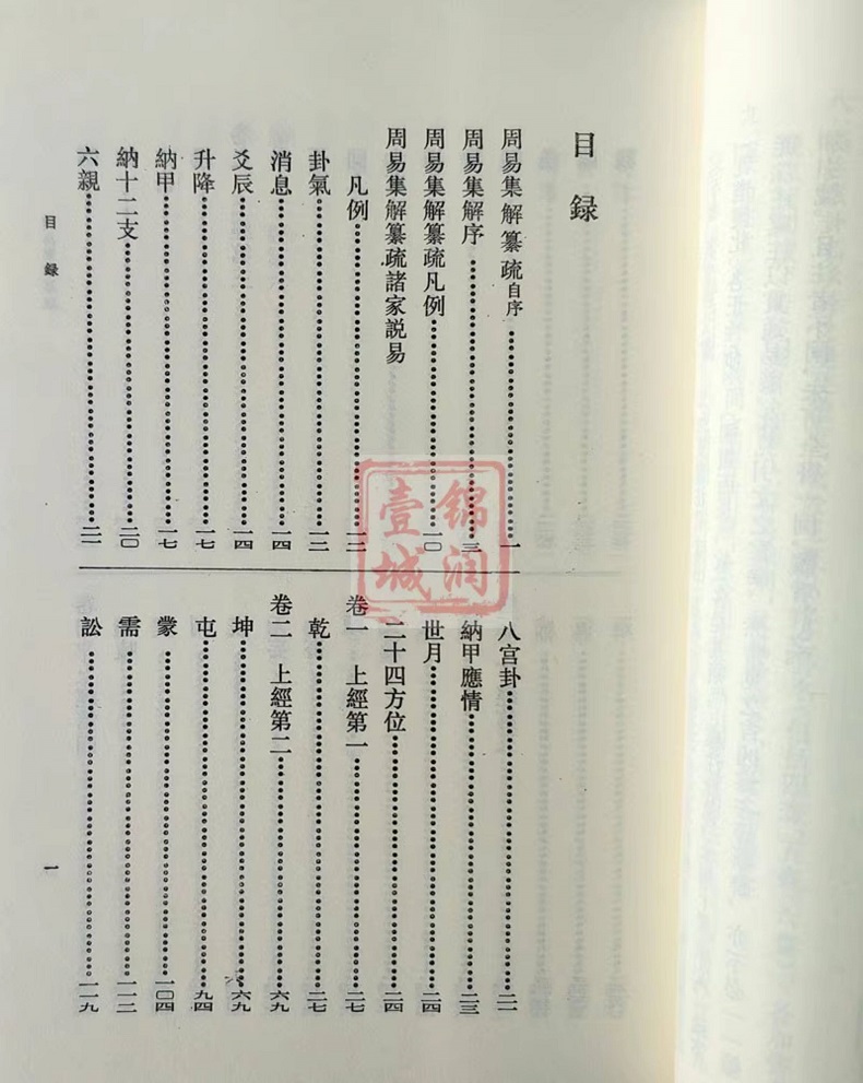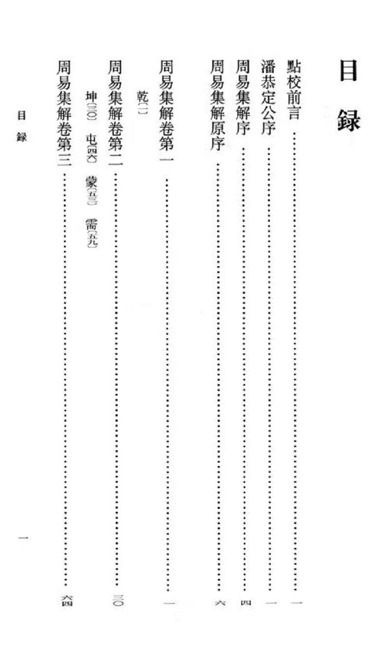 《周易集解纂疏》包括周易集解纂疏自序、周易集解序、周易集解纂疏凡例、周易集解纂疏諸家說易、凡例、卦氣、消息、爻辰、升降、納甲、納十二支、六親、八宮卦、納甲應情、世月、二十四方位、卷一 上經第一等。