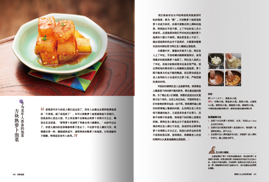 《四季泡菜》分為兩個部分介紹韓國泡菜的醃製方法。