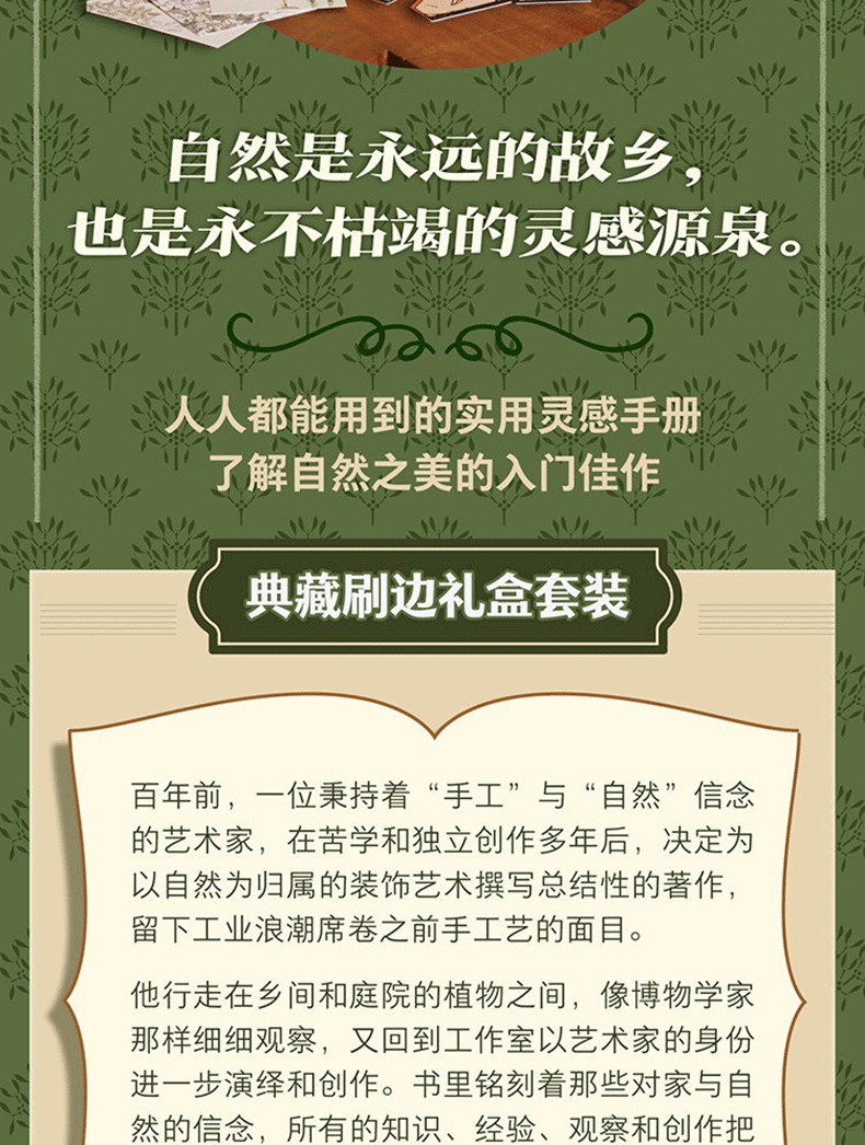 百年前,一位秉持著「手工」與「自然」信念的藝術家,在苦學和獨立創作多年後,決定為以自然為歸屬的裝飾藝術撰寫總結性的著作,留下工業浪潮席捲之前手工藝的面目。