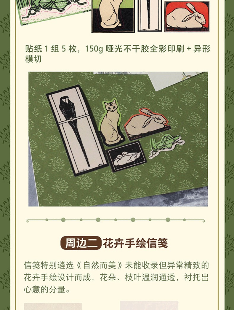 精選新藝術運動女性藝術家儒勒·奧古斯特·阿貝爾-迪斯(Jules Auguste Habert-Dys)、荷蘭版畫家朱莉·德·格拉格(Julie de Graag)等人的代表作為素材,設計成專屬手帳週邊。