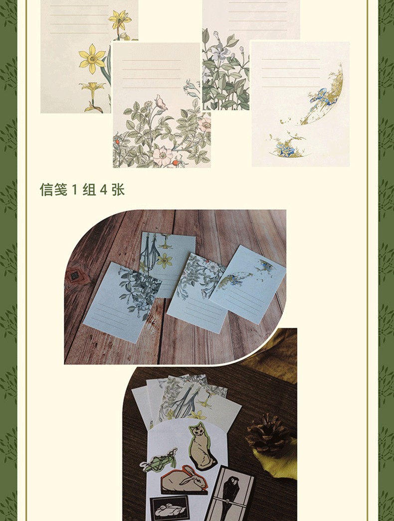 信箋4張特別遴選《自然而美》未能收錄但異常精緻的花卉手繪設計而成,花朵、枝葉溫潤通透,襯托出心意的分量。