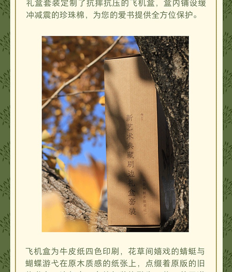 《新藝術典藏刷邊禮盒套裝》訂製了抗摔抗壓的飛機盒,盒內鋪設緩衝減震的珍珠棉,為您的愛書提供全方位保護。