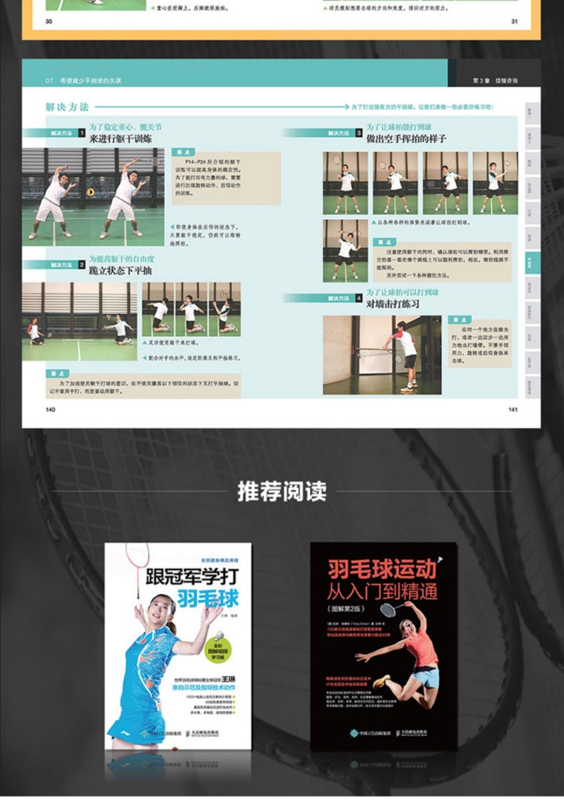 舛田圭太主編的《圖解羽毛球技術和戰術(基礎訓練200項)》是羽毛球基本技術和戰術的訓練攻略,全書包括針對羽毛球基本技術、殺球、高遠球·吊球、網前球、接發球、平抽球、發球、單打的戰術訓練、雙打的戰術訓練、多球訓練、體能訓練等200項基礎訓練項目,以及羽毛球訓練計劃的製訂方法;每項訓練又涵蓋目標、等級、練習步驟、教練筆記、動作要領及建議等內容,並以真人實拍照片、示意圖形式細緻講解每項訓練內容和訓練方法。本書適合從小學生到國家隊選手的所有羽毛球運動員和愛好者夯實羽毛球基本功,並有效提高他們的羽毛球技戰術水平。