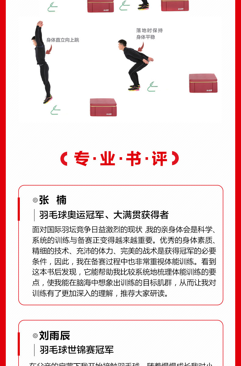 張 楠 羽毛球奧運冠軍、大滿貫獲得者 劉雨辰 羽毛球世錦賽冠軍 田俊寧 重量教練、北京羽毛球隊總教練 種彥強 北京市羽毛球協會主席 專業推薦!北京羽毛球隊男隊教練聯合專業院校老師傾力打造!近500幅真人示範與肌肉解剖彩圖 精講68項與羽毛球技術緊密結合的身體訓練動作 隨書附贈動作教學視頻!結合動作指導視頻學習,輕鬆提高運動表現!