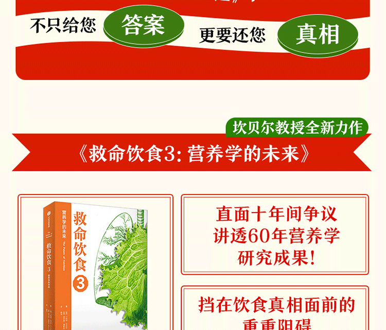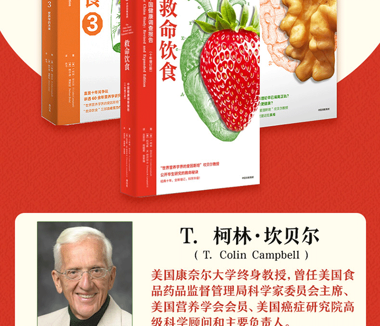 “救命飲食”系列整體圍繞一個長期以來困擾公眾的核心問題,給出作者潛心研究營養學60餘年的答案:什麼值得吃?什麼是好的營養?飲食與疾病和健康究竟有什麼關係?