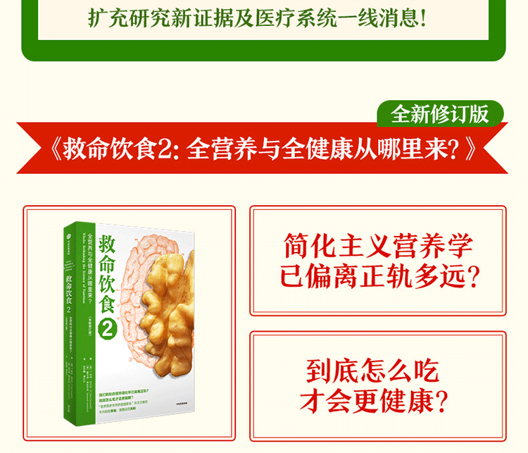 √ 《救命飲食2:全營養與全健康從哪裡來? 》“解惑篇”——通過對醫學範式、心理桎梏、經濟力量的分析,詳解為什麼這些證據和結論會讓人產生一種“懷疑感”,一直以來很難被大眾接受;