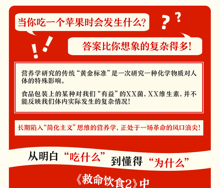 《救命飲食2:全營養與全健康從哪裡來? 》“解惑篇”——通過對醫學範式、心理桎梏、經濟力量的分析,詳解為什麼這些證據和結論會讓人產生一種“懷疑感”,一直以來很難被大眾接受;