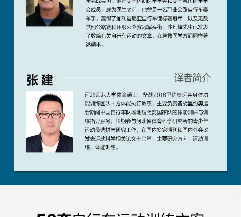 [英]香農·沙凡鐸(Shannon Sovndal) 博士 醫學博士,也是Garmin-Sharp-Barracuda 職業自行車隊的隊醫,任職於科羅拉多大學的普通臨床研究中心(General Clinical Research Center,GCRC)。沙凡鐸先生畢業於哥倫比亞大學醫學院,並在斯坦福大學完成實習。他是美國運動醫學學會和美國急診醫學學會成員。成為醫生之前,他曾是一名職業公路自行車賽車手,贏得了加利福尼亞自行車錦標賽冠 軍,以及無數其他公路賽和環形公路賽冠 軍頭銜。沙凡鐸先生已發表了數篇有關自行車運動的文章,在急救醫學方面同樣著作頗豐。
