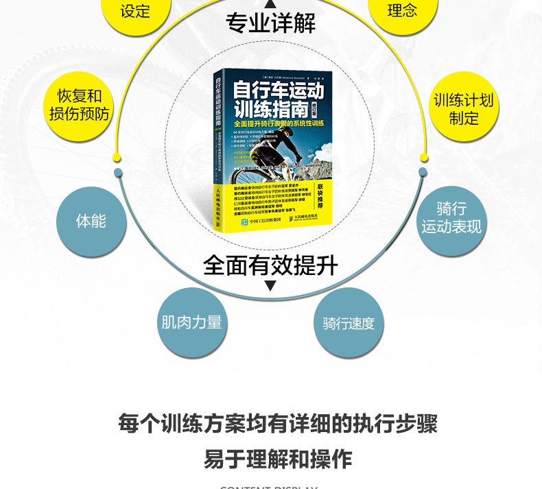 這是一本全面系統地講解自行車基礎體能訓練的指南,是一本針對自行車運動愛好者在車下進行訓練的手冊。全書共分6章,第1章介紹了人*車的協調統一,涵蓋了自行車方面的基礎知識及訓練要點;第2~4章分別從拉伸、力量、核心3個方面系統講解了具體的訓練方法及動作要領;第5章則重點介紹了交叉訓練的原則和方法;最後一章給出瞭如何進行週期化訓練和製訂訓練計劃等內容。