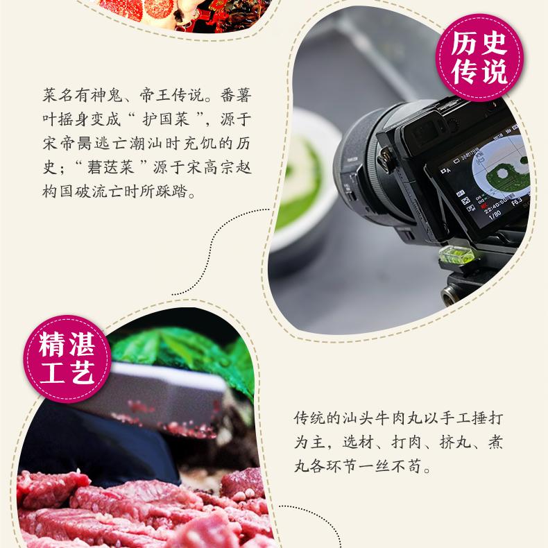 潮汕是地方傳統文化和民俗保留較好的地區之一,一千多年來的美食積澱在古韻遺產和新流交匯下日益生輝。素有“中國高端菜系”之稱的粵菜代表潮汕菜,究竟“貴”在何處?看似簡單、原生態的菜餚,其實背後從選料、刀工、烹調、配料、擺盤方式上都有一系列的講究,所以才能做到鮮而不腥、清而不淡。拿海貨魚類來說,什麼季節吃什麼魚、選什麼部位很好、筵席什麼時候上、魚頭方向朝哪裡都有考究,真正地將食味與嶺南的鄉土文化和人文精神融為一體。