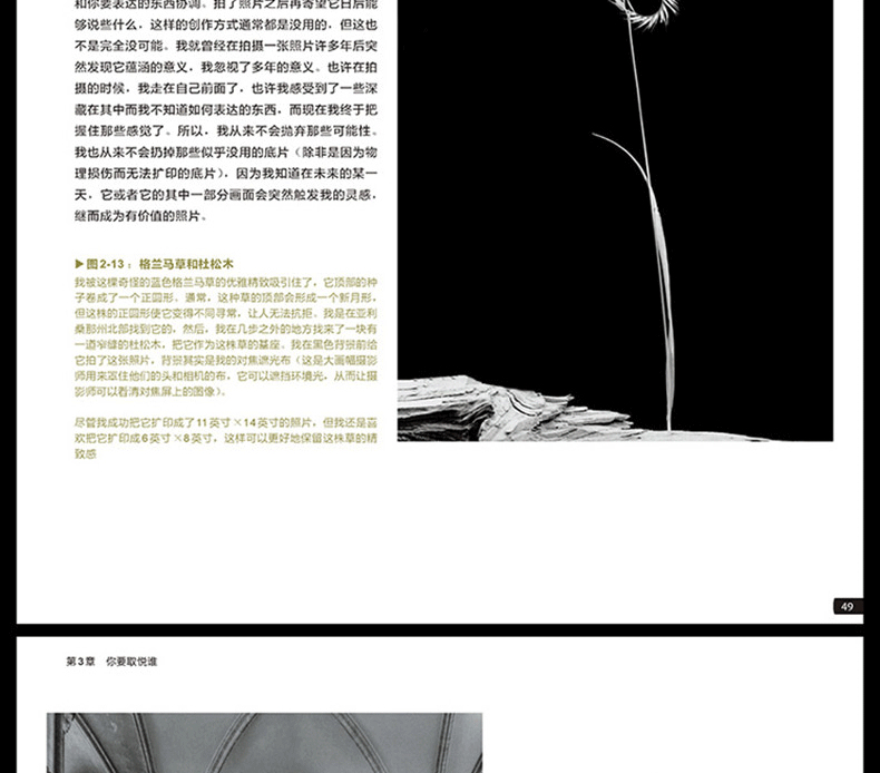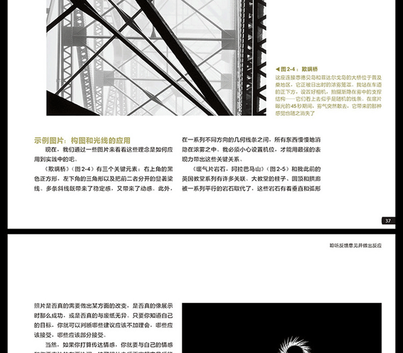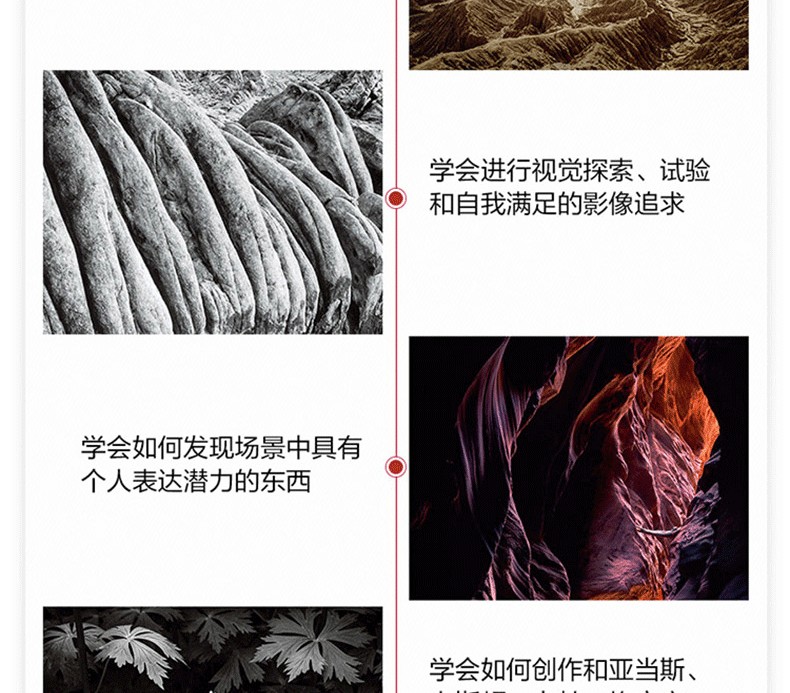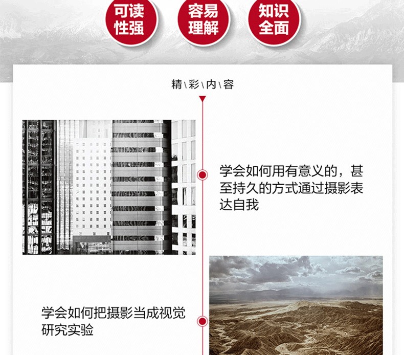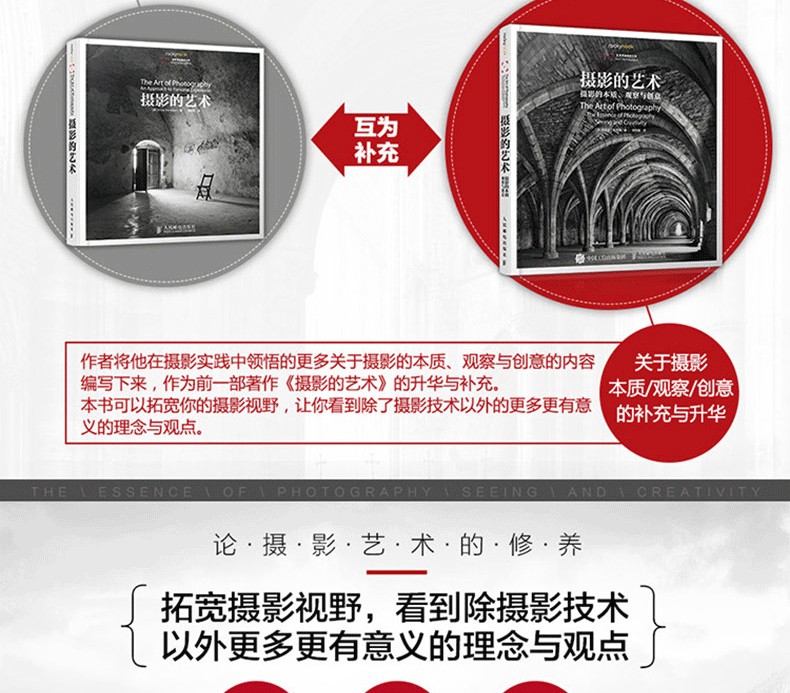 而在《攝影的藝術——攝影的本質、觀察與創意》這部《攝影的藝術》的昇華篇著作中,作者將他在攝影實踐中領悟的更多關於攝影的本質、觀察與創意的內容編寫下來,作為前一部著作《攝影的藝術》的昇華與補充。本書可以拓寬你的攝影視野,讓你看到除了攝影技術以外的更多更有意義的理念與觀點。這些內容或許正是你所關注的——如何用有意義的、甚至持久的方式透過攝影表達自我;如何把攝影當成視覺研究實驗;如何進行視覺探索、試驗和讓攝影師達到創作上的自我滿足;如何面對各種場景和如何發現場景中可用作個人表達的潛力;如何創作和亞當斯、韋斯頓、卡帕、坎寧安、薩爾加多等大師作品一樣具有持久影響力的攝影影像……