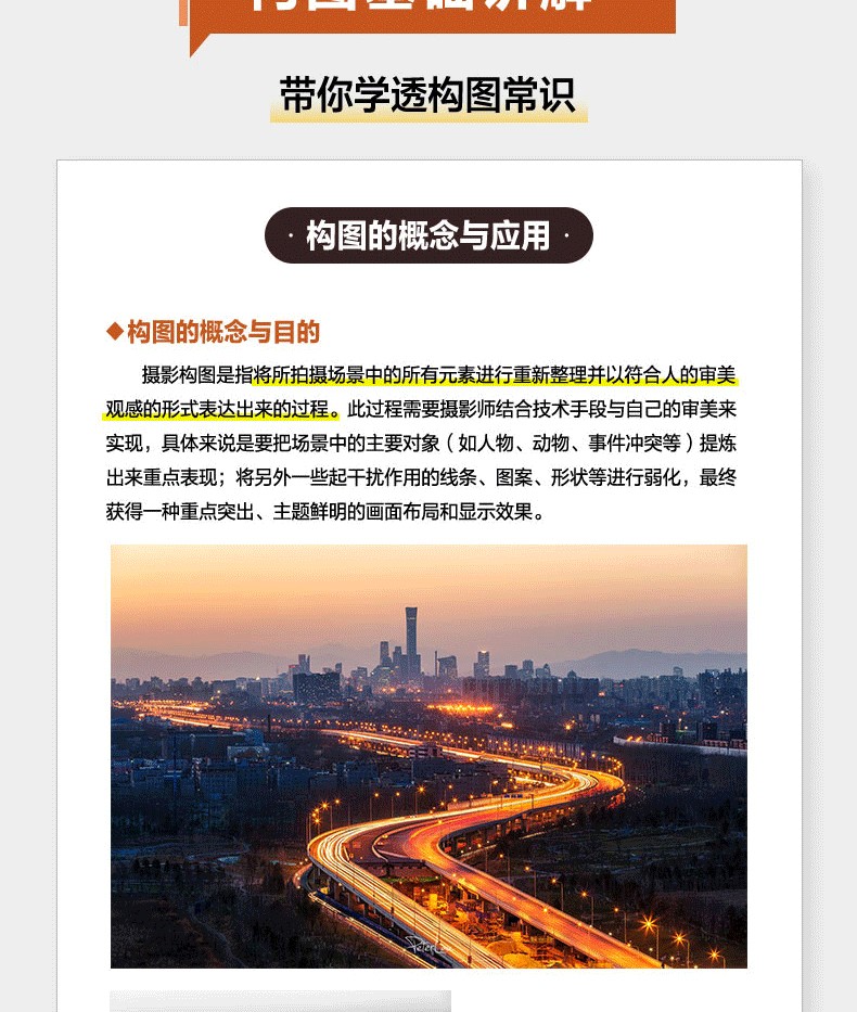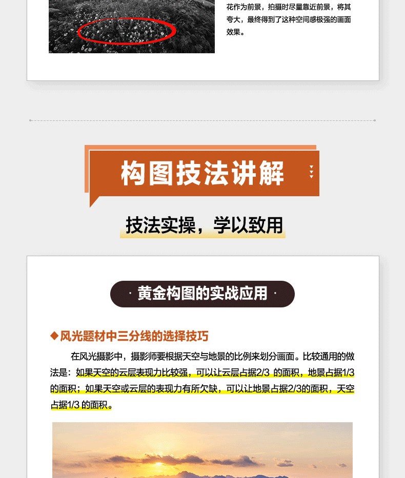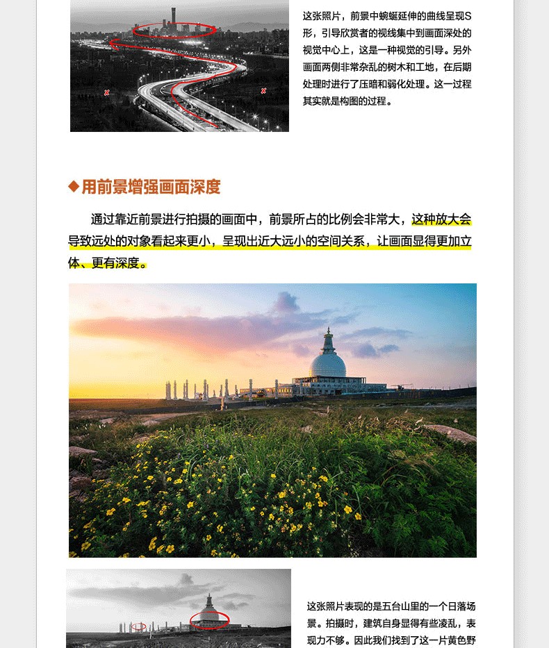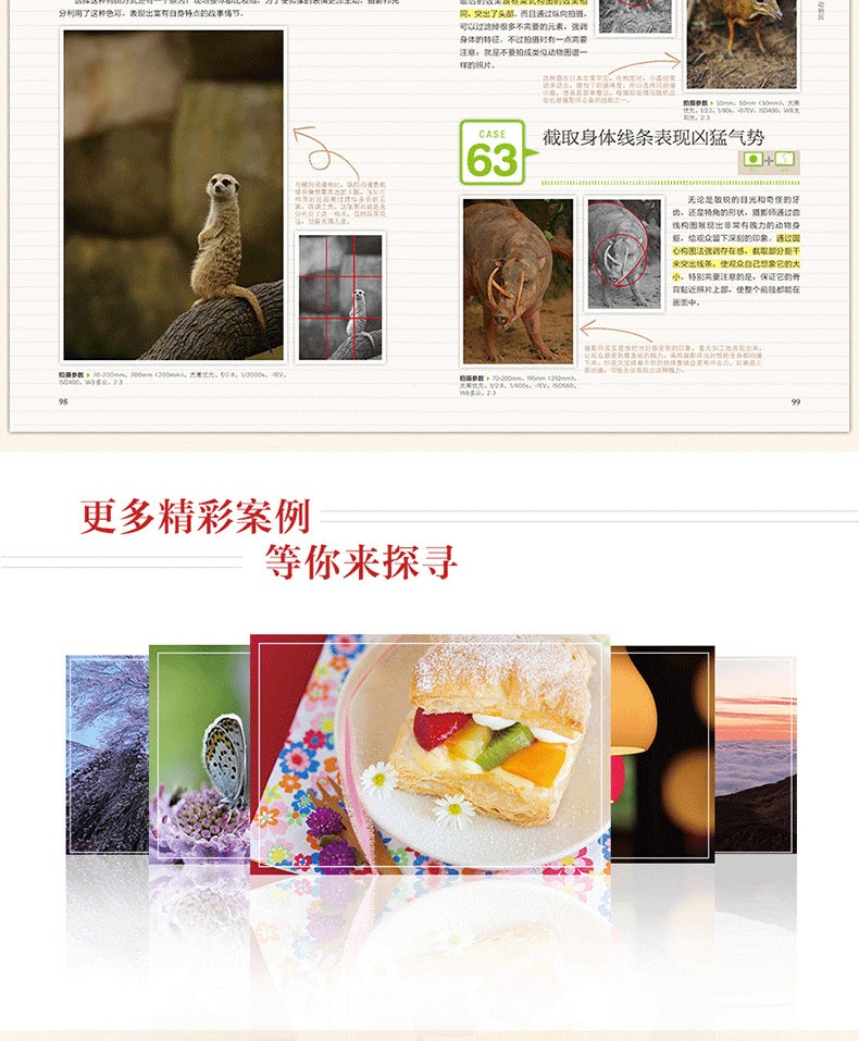 調整前後對比圖展示,讓你可以直觀感受到知名構圖對作品的巨大影響; 引入輔助線講解,化繁為簡,讓晦澀的攝影術語也能一看就懂; 自然風光、人物、動物、街拍等主題實戰構圖技巧講解,讓你可以真正應用到自己的攝影作品中。