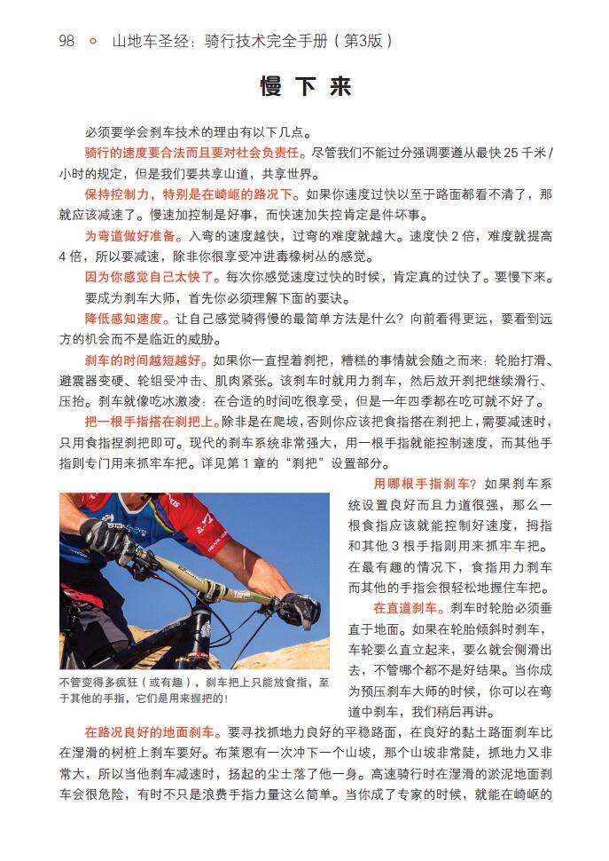 本書是一本全面詳細介紹山地車騎行技術的指南。書中涵蓋了山地車的選擇與調校,人車合一的騎行姿勢,控制速度、創造動力、切過彎道、征服障礙的方法與技巧,包括高效合理的踩踏、壓抬、獨輪騎、後輪滑、兔跳、飛躍等各種技術動作。同時還講解了傷病的預防與處理相關知識,並針對各種地形,如彎道、陡坡和崎嶇路面等,給出了極具價值的技術指導,最後還介紹了耐力賽、4X賽、速降賽、XC越野賽等多種比賽形式及參賽經驗和技巧。本書適合廣大的山地車騎行愛好者閱讀,是一本山地車騎行訓練推薦的手冊,為廣大愛好者提供了專業的技術指導,幫你騎得更快、更好、更安全並更有自信。
