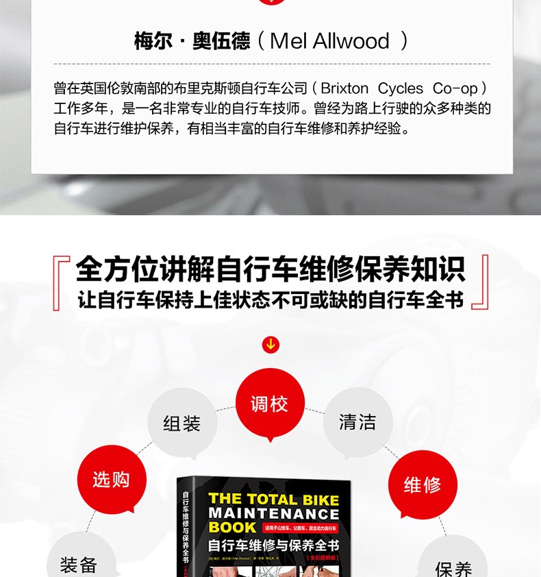 梅爾·奧伍德(Mel Allwood ),曾在英國倫敦南部的布里克斯頓自行車公司(Brixton Cycles Co-op)工作多年,是一名很好專業的自行車技師。曾經為路上行駛的眾多種類的自行車進行維護保養,有相當豐富的自行車維修和養護經驗。