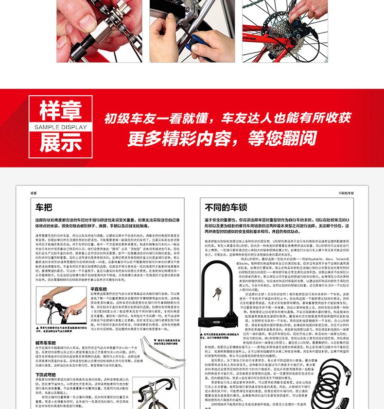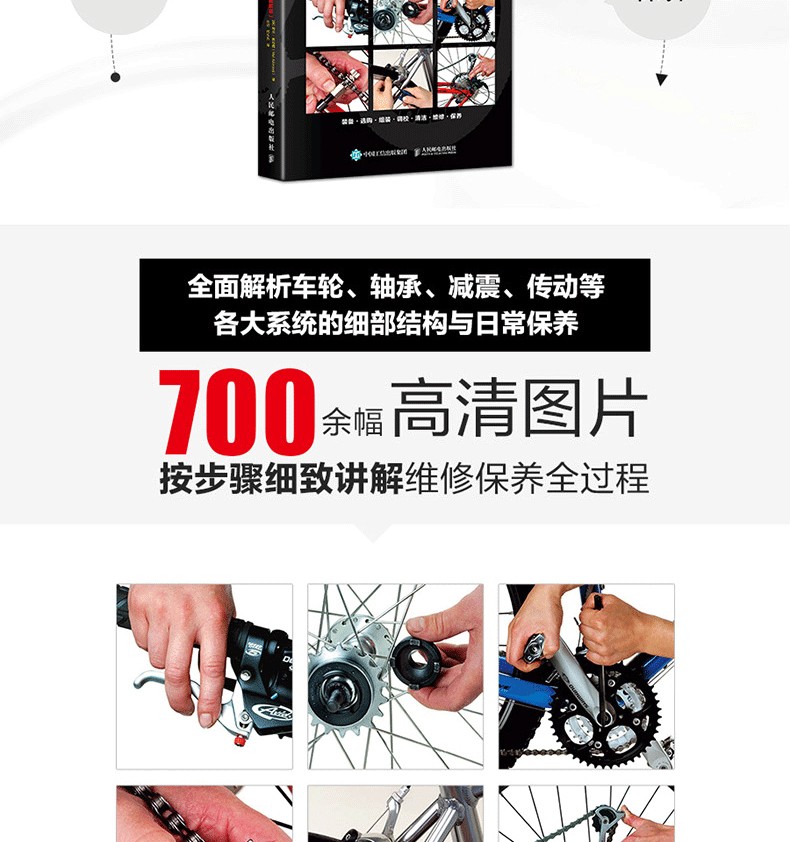 1 一本來自英國的專業自行車維修保養全書。 2 適用於山地車、公路車、混合動力自行車等幾乎所有類型的自行車。 3 全面解析車輪、軸承、車輪、減震、傳動等各大系統的細部結構與日常保養。 4 700餘幅高清圖片,全彩印刷,圖文並茂,按步驟細緻講解維修保養全過程。 5 自行車裝備、選購、組裝、調校、維修、保養一本搞定。 6 初級車友一看能懂,資 深車友也能有所收穫。 6 讓車友輕鬆DIY適合自己的自行車,是一本自行車維修、設定的手邊書。