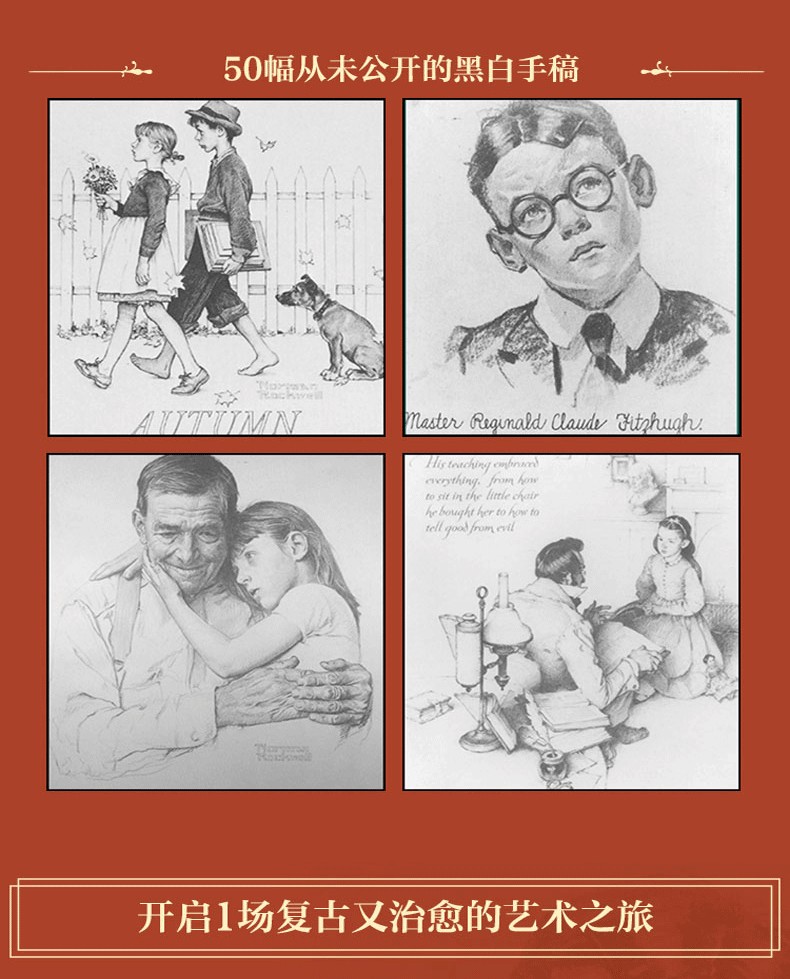 洛克威爾是一位高產的藝術家,一生創作了4000餘幅優秀畫作。洛克威爾始終堅持“按照自己喜歡的方式描繪生活”,他通過畫作歌頌普通人的日常生活,作品中獨特的美好與純真感動了數百萬人。這本插畫集是洛克威爾的兒子湯姆精選出其150幅最為精美的畫作彙集而成的,包括100幅經典代表作和50幅此前從未面世的珍貴手稿。翻開畫集,我們彷彿身臨洛克威爾所處的時代,一幅幅鮮活的生活圖景在我們面前徐徐展開。這些作品中細膩寫實的故事表現力和扣人心弦的畫面張力,充分展現了洛克威爾的精湛畫技和匠心巧思,也奠定了其家喻戶曉的美國國民插畫家地位。