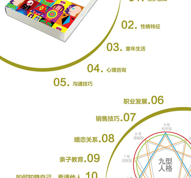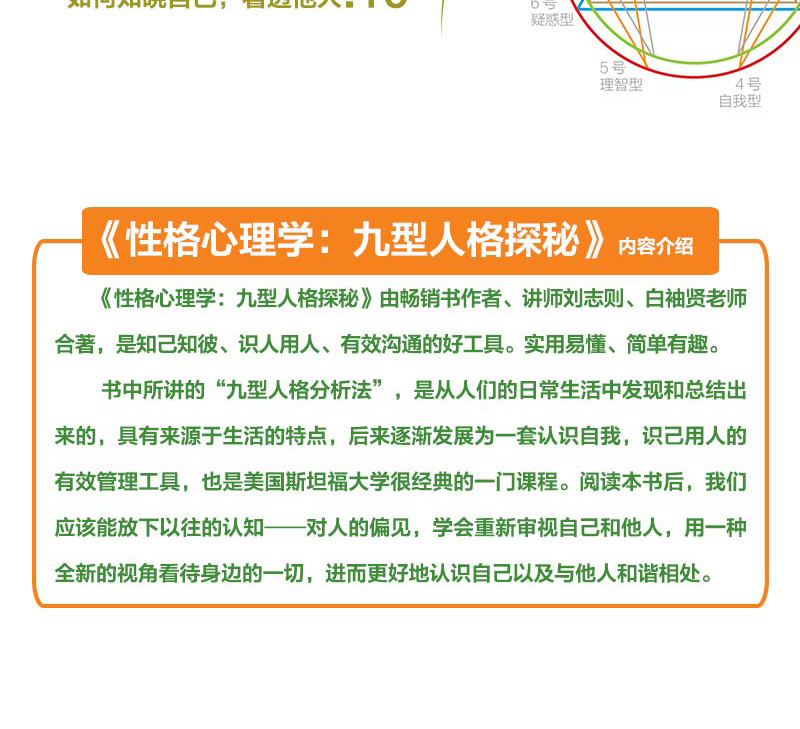 如今社會中流行一種古老的性格分析法——九型人格分析法。它不是杜撰,是從人們的日常生活中發現和總結出來的,具有來源於生活的特點,後來逐漸發展為一套認識自我,識己用人的有效管理工具,也是美國斯坦福大學很經典的一門課程。閱讀本書後,我們應該能放下以往的認知——對人的偏見,學會重新審視自己和他人,用一種全新的視角看待身邊的一切,進而更好地認識自己以及與他人和諧相處。