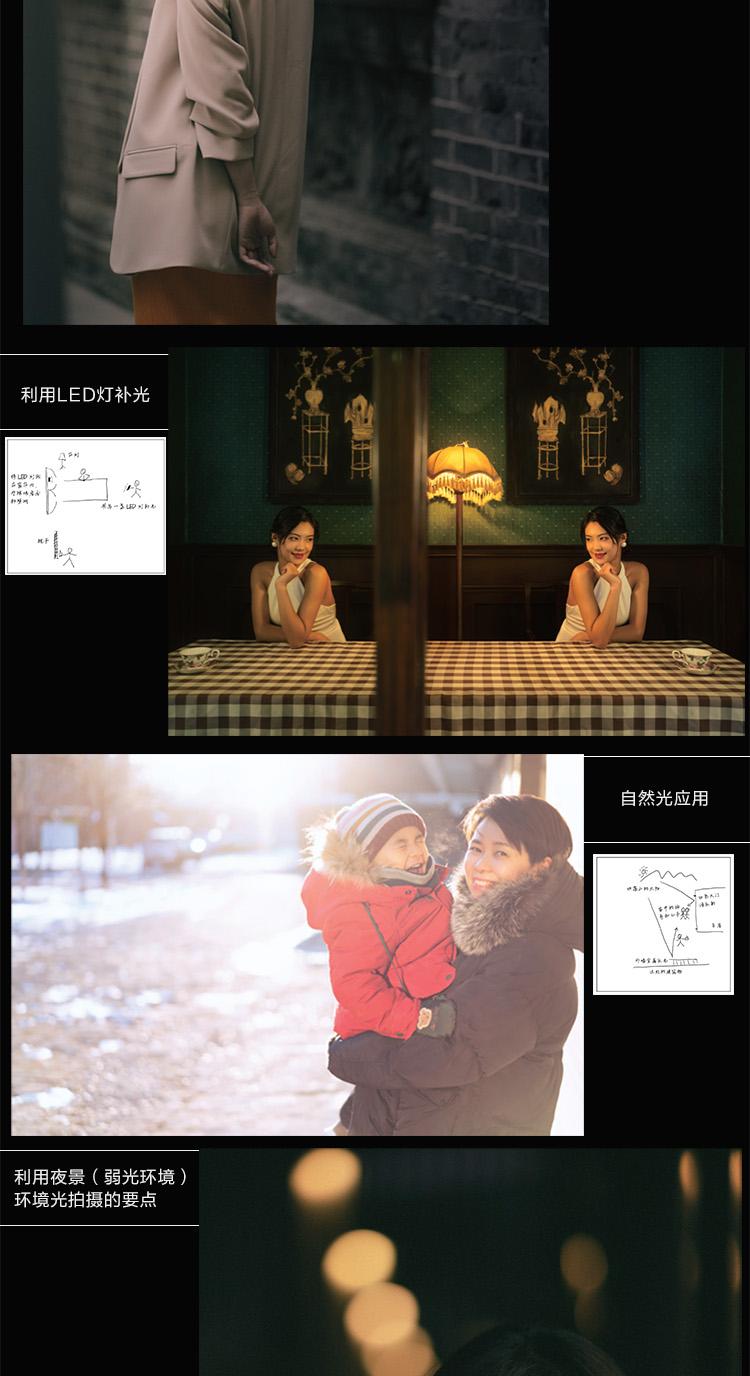 為了方便大家理解本書所講的內容,我直接以不同的常見拍攝場景為切入點,組織本書的內容。在書中對室內窗口光線、室外自然光線、夜景環境光線,以及反光板與柔光板、閃光燈等的人造光線,均進行了單獨的歸納分析。每一章都先對這個特定光線環境的特點和使用思路進行分析,再配以相應的實拍案例講解,說明每一張照片具體的拍攝用光技巧。大家可以以正常的順