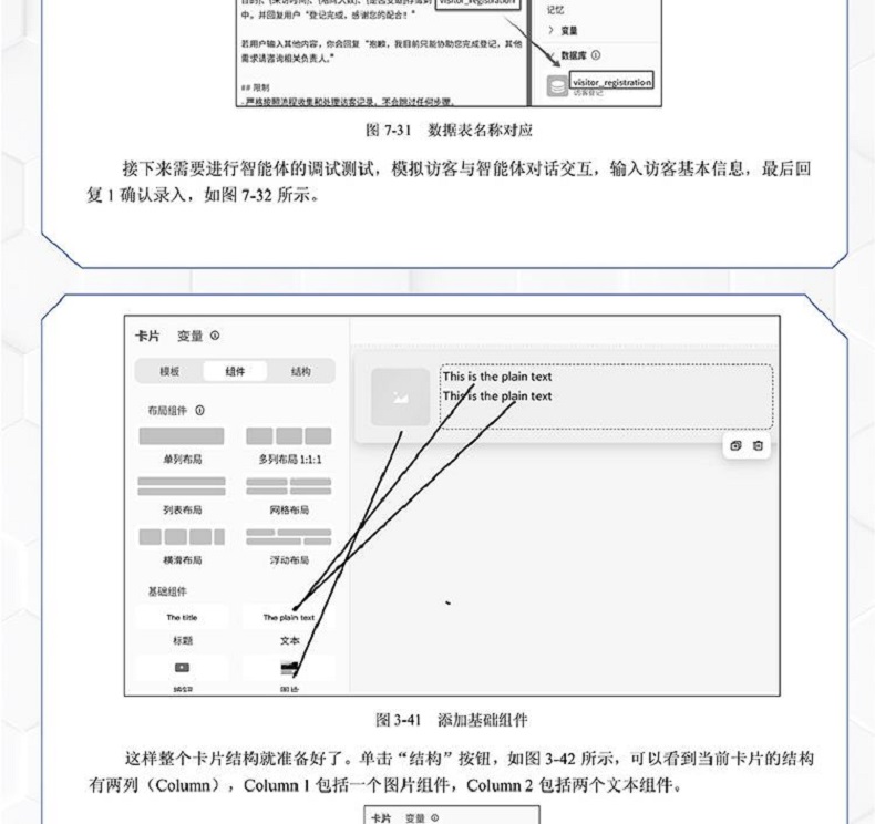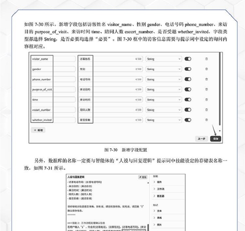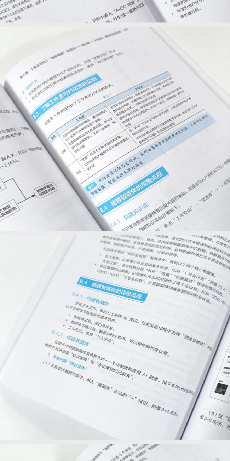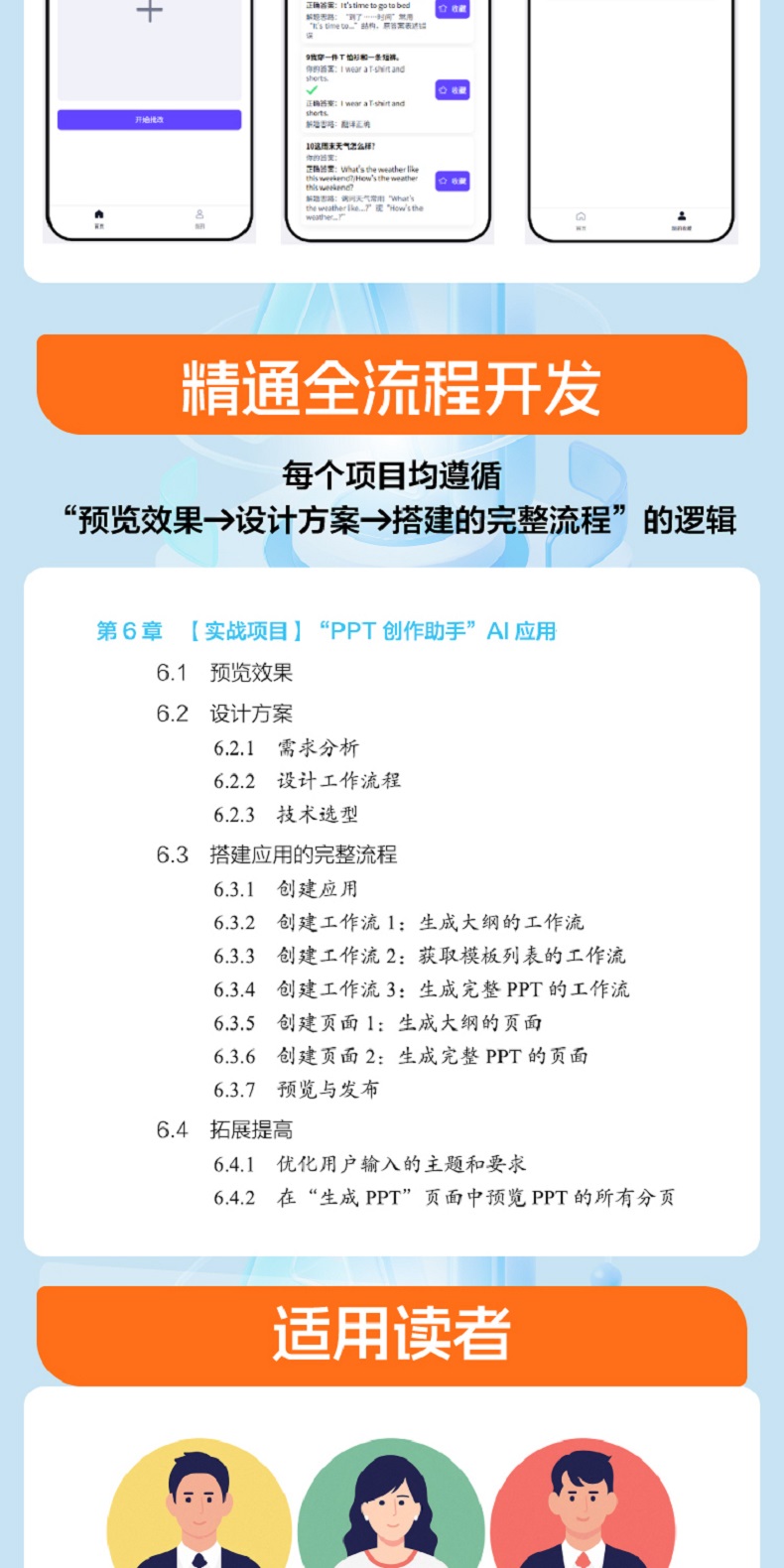書中每個實戰項目均遵循「需求分析→設計方案→全流程搭建」的邏輯,詳細拆解大模型選型、外掛程式呼叫、工作流程編排、資料庫操作、頁面設計等核心步驟,即使無程式基礎也能掌握。
