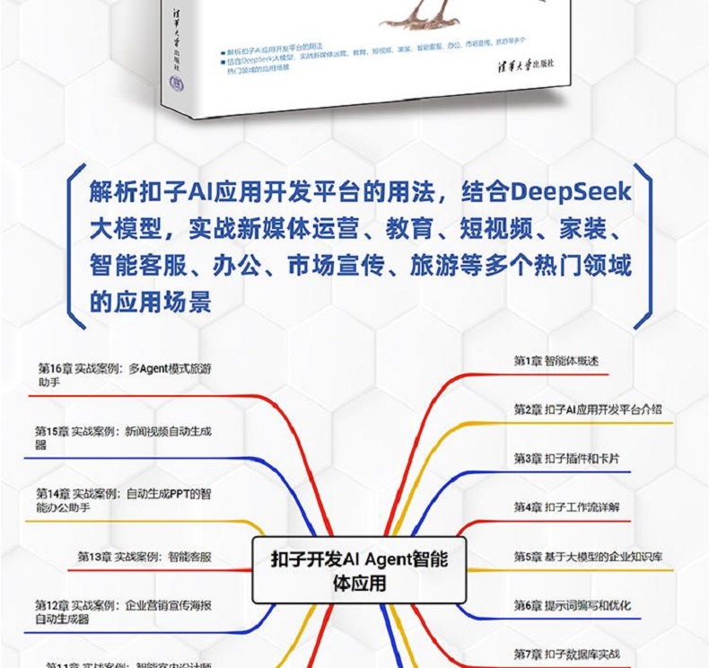 本書聚焦AI智能體(Agent)與AI應用開發,以「理論+實戰」的形式,系統講解如何基於釦子(Coze)平台從零建構實用型AI智能體與AI應用。